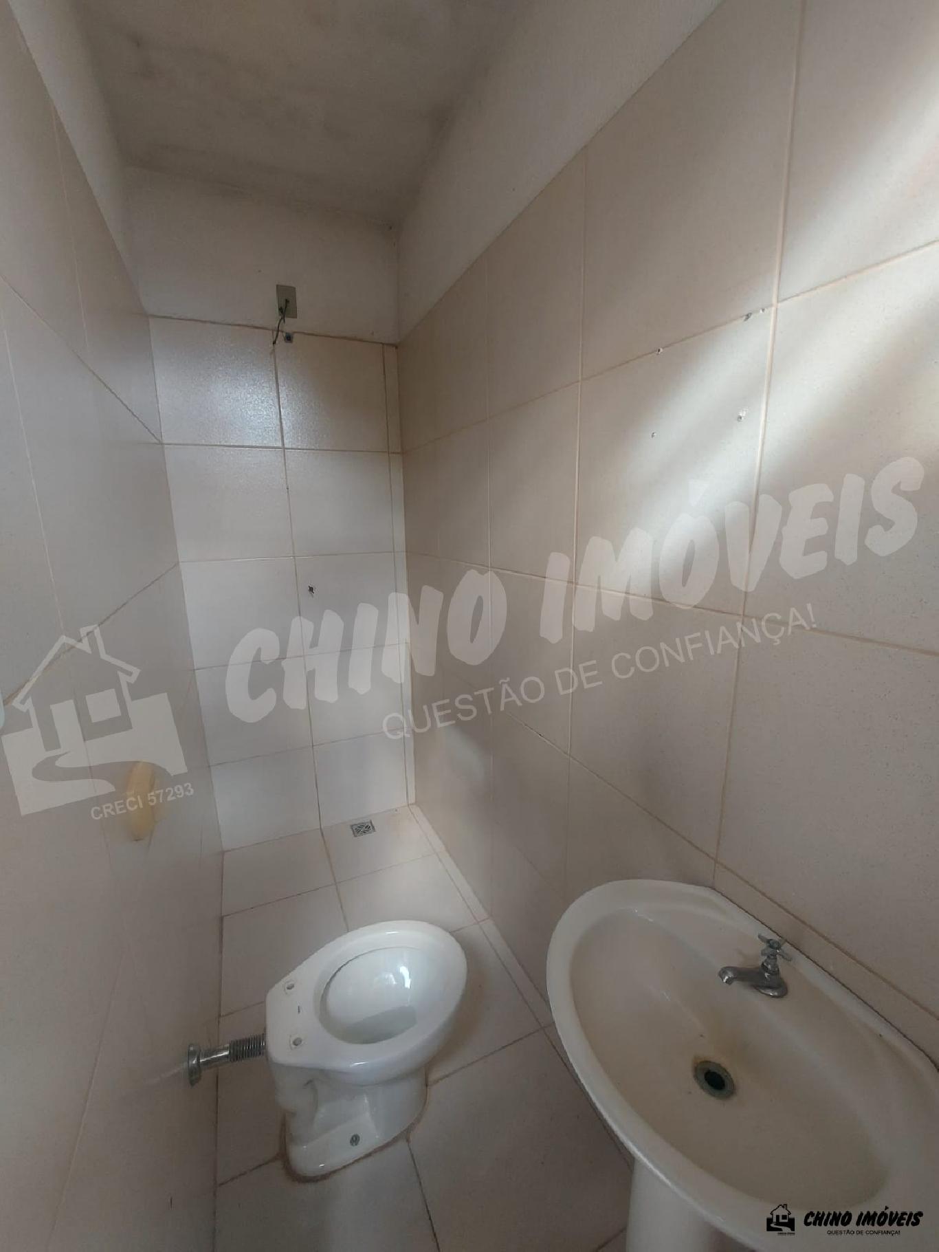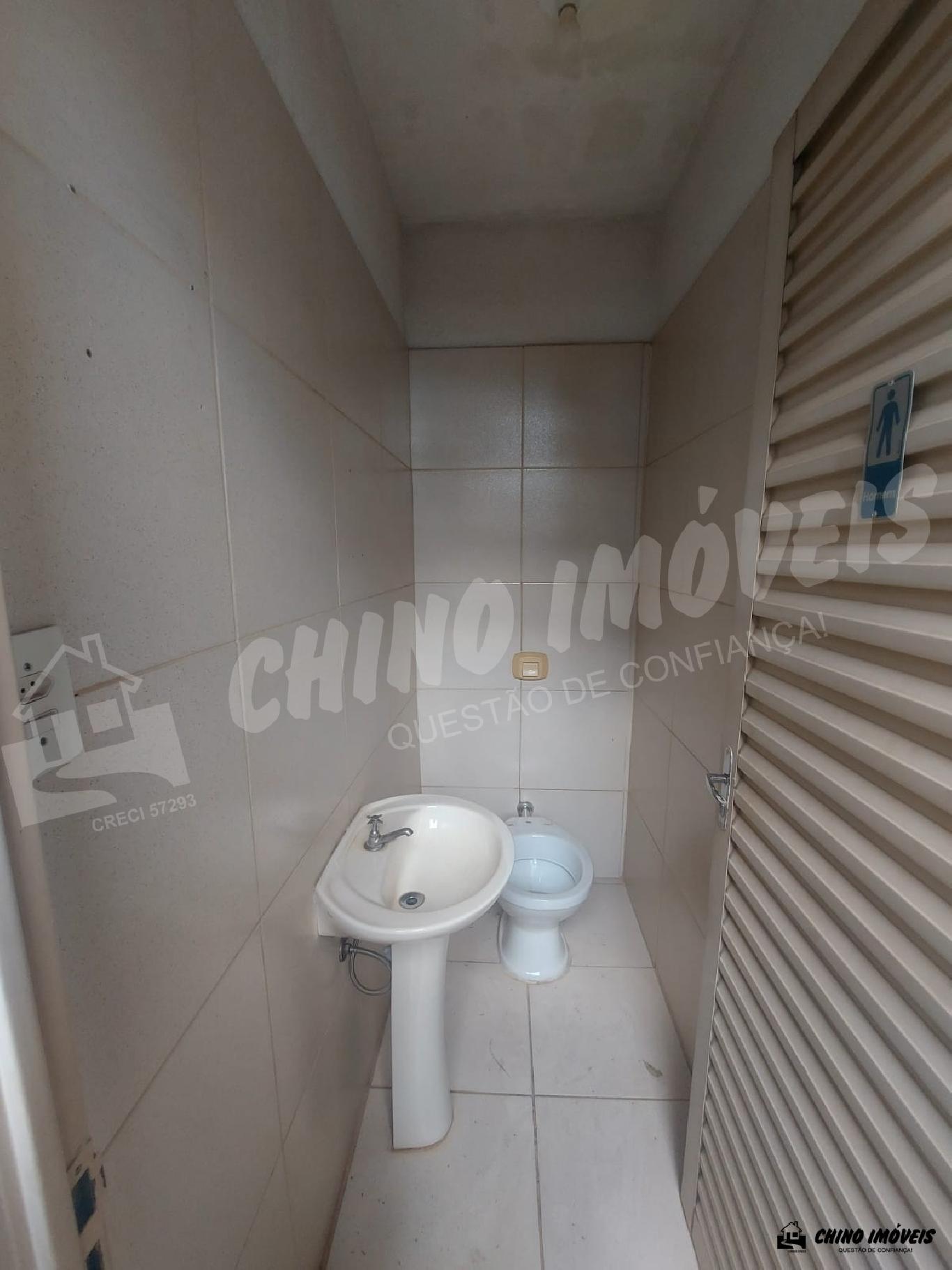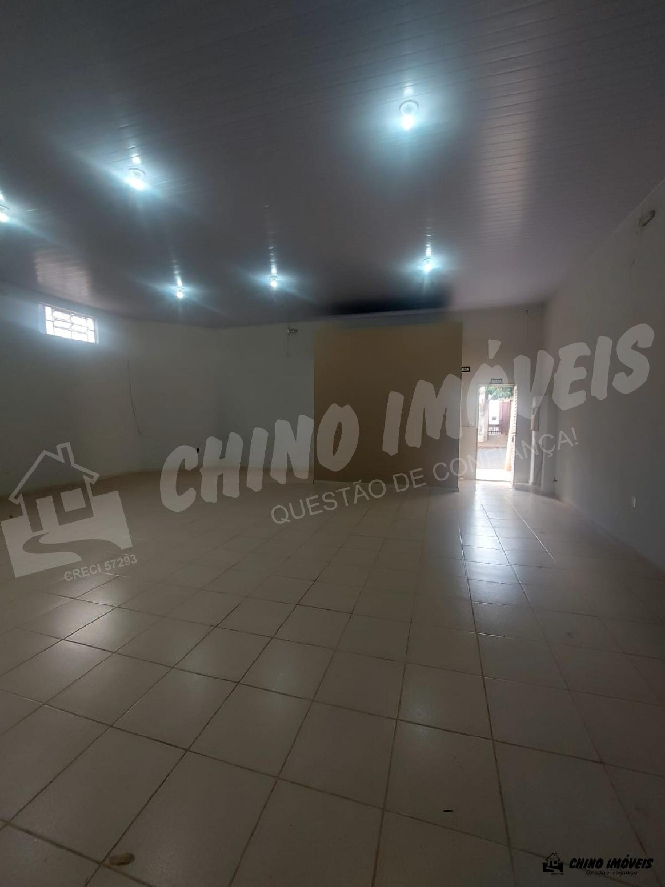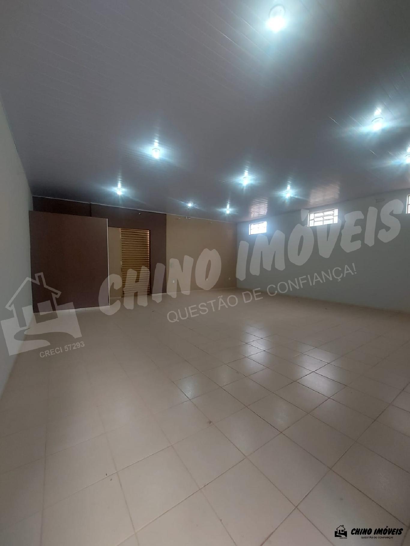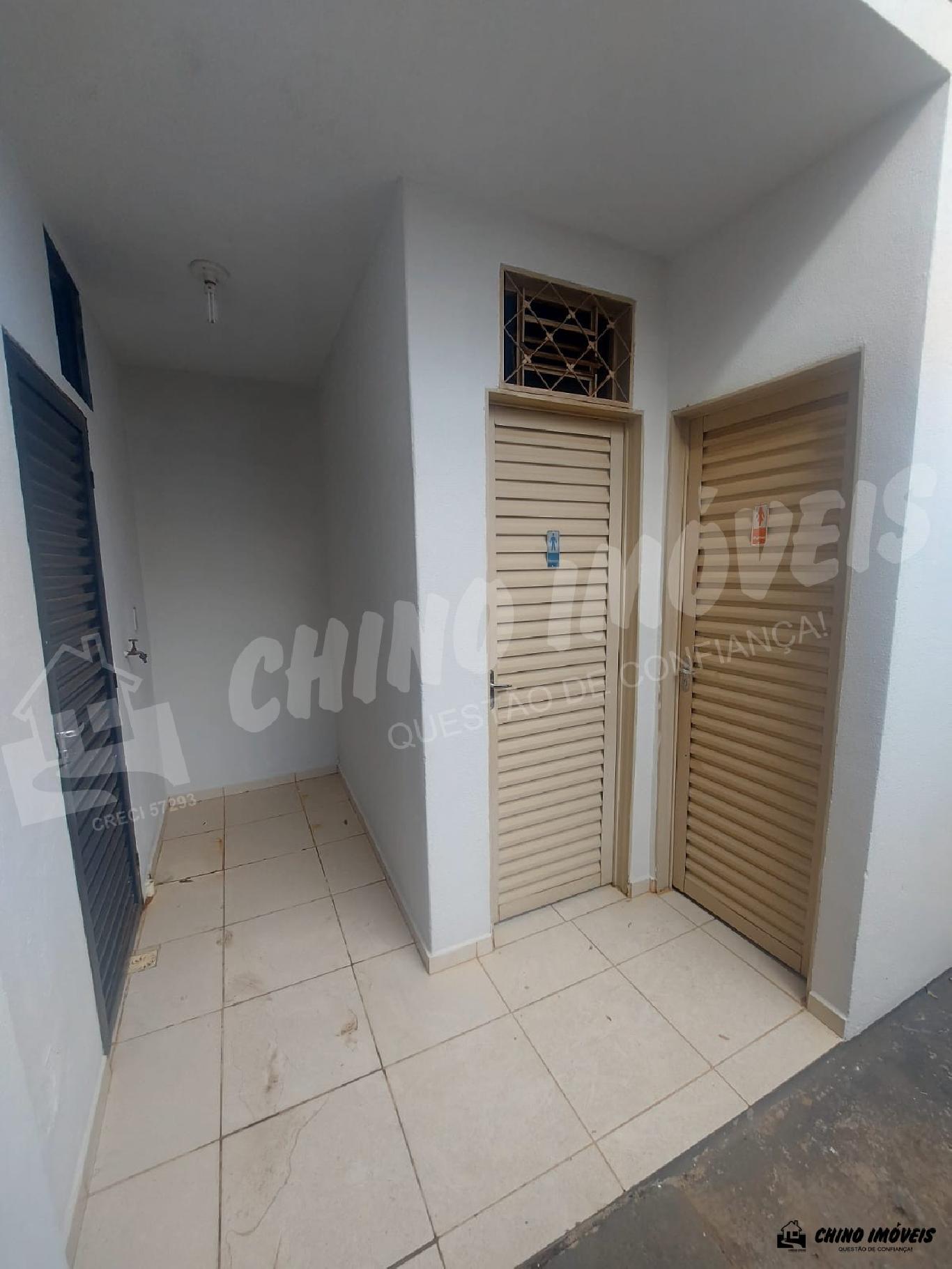 Salão grande. Contém 2 banheiro (feminino e masculino). Um fundo com cobertura, 1 copa