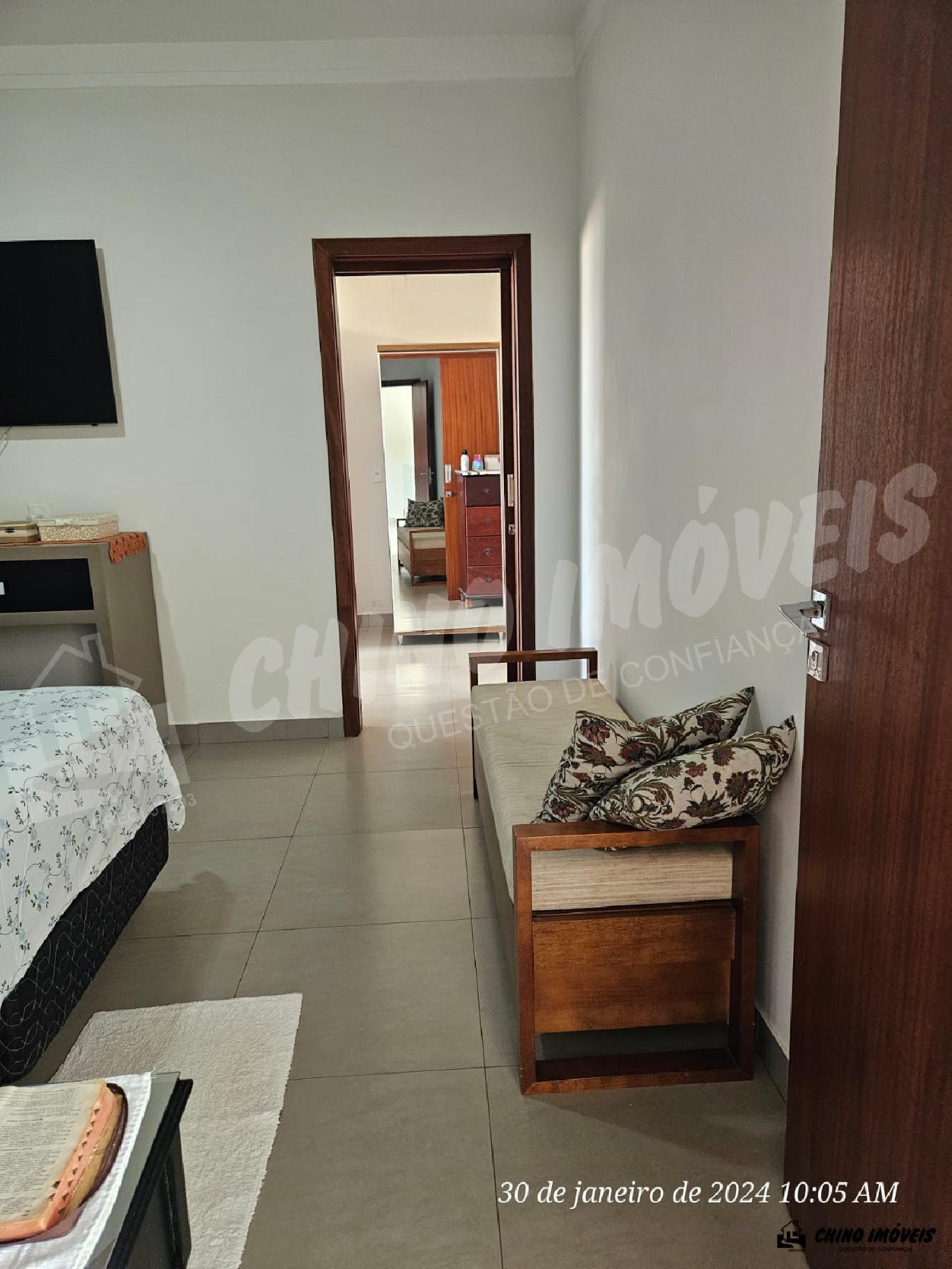 1 dormitório, sendo suíte máster, com armários embutidos, 2 dormitórios no piso interior, com armários planejados, closet, mezanino, sala de estar e cozinha integrada com armários planejados, despensa, lavanderia, área gourmet com churrasqueira, quintal amplo, possui sistema de segurança completo, ar condicionado, portão eletrônico, piso todo em porcelanato, aquecimento solar nas torneiras da cozinha e chuveiros, + iptu 162,00