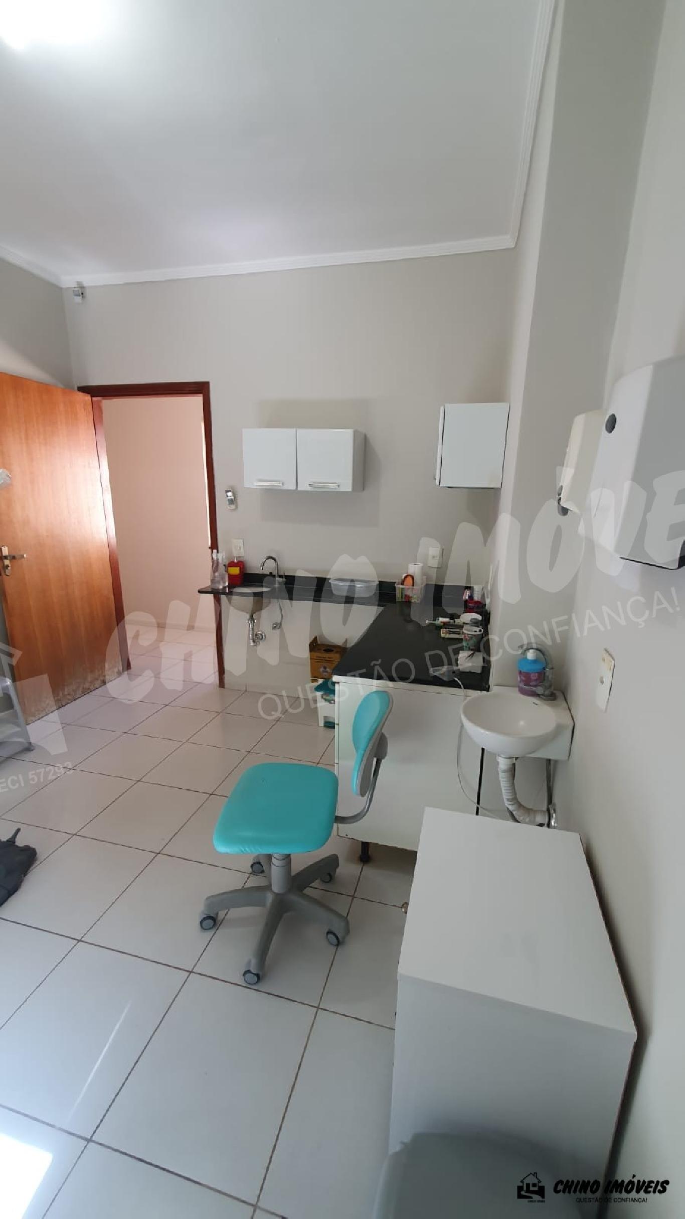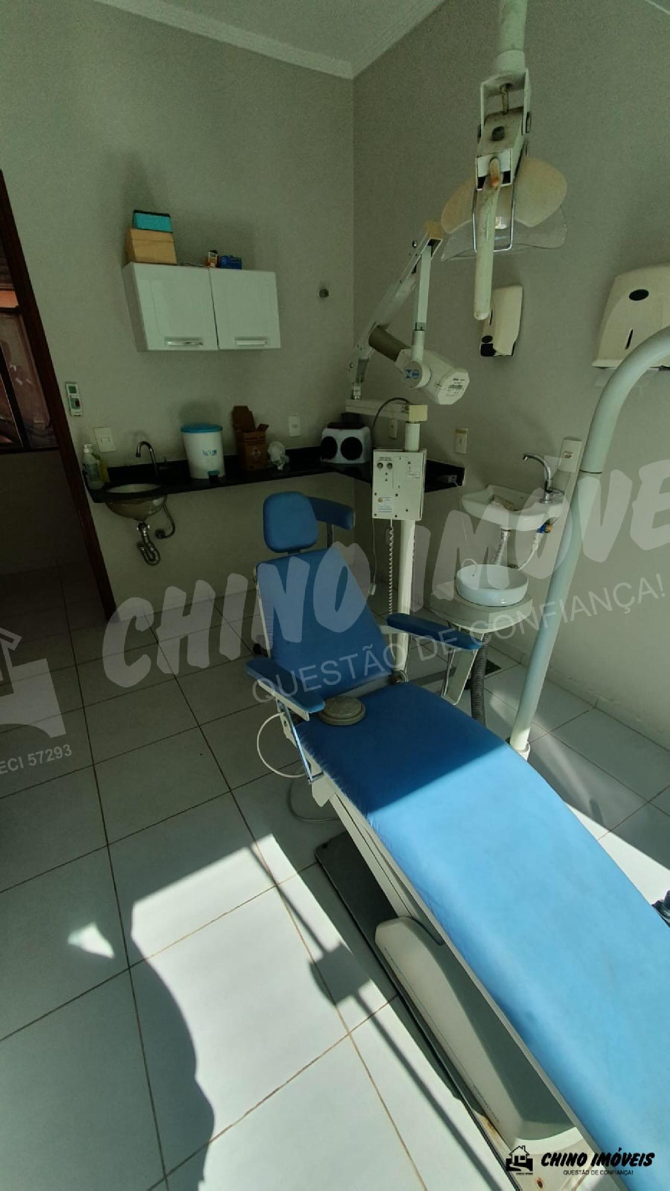 Dois consultórios montados, raio x, sala de espera com balcão pré moldado para duas secretarias, 2 banheiros, cozinha, estacionamento próprio, uma sala para escritório