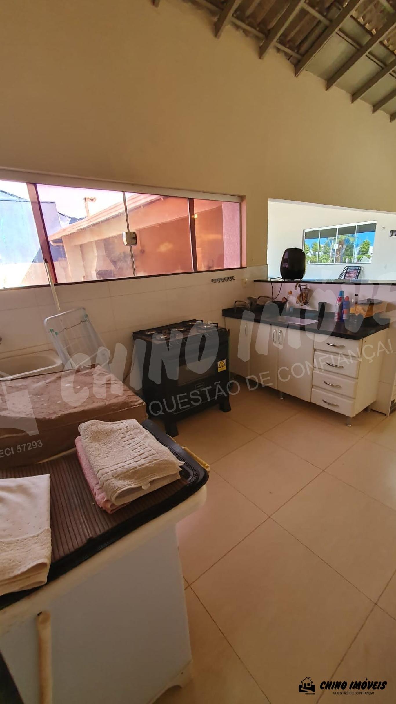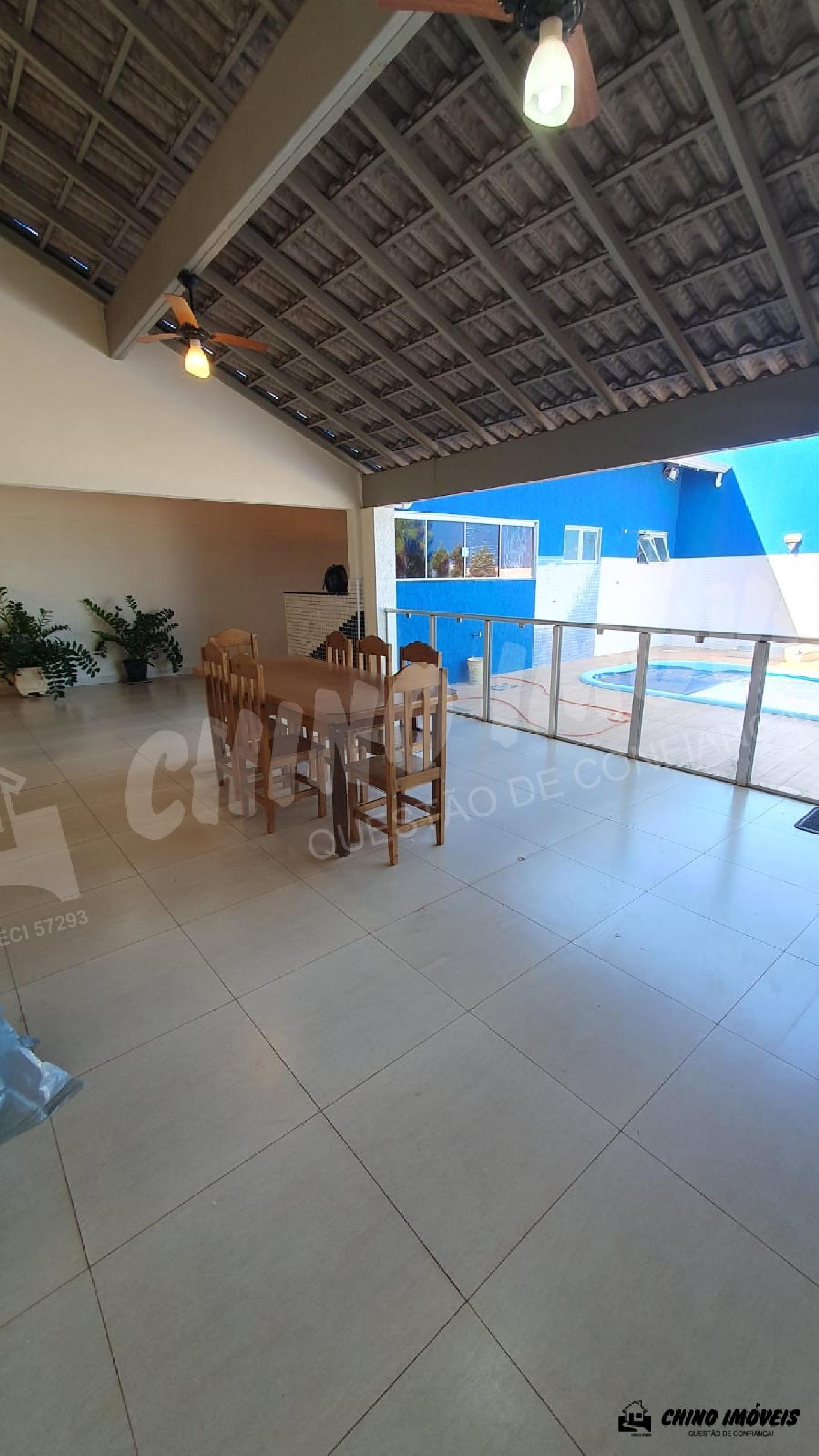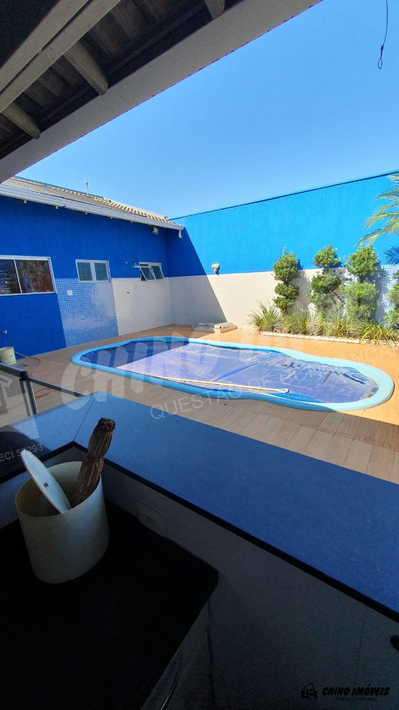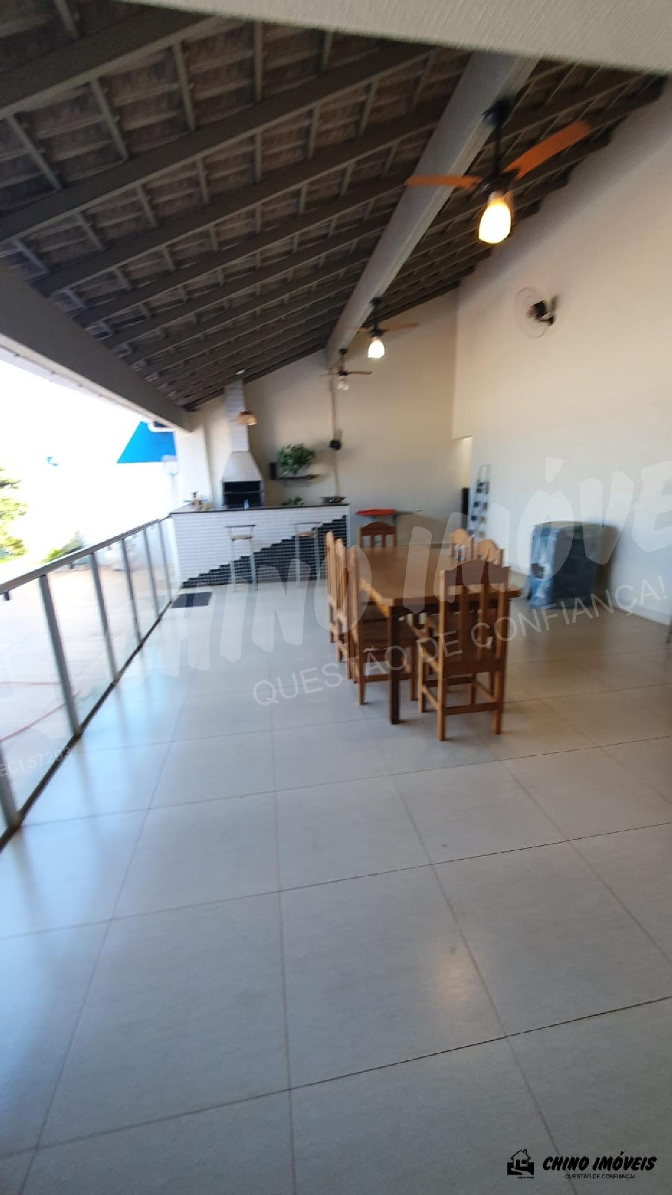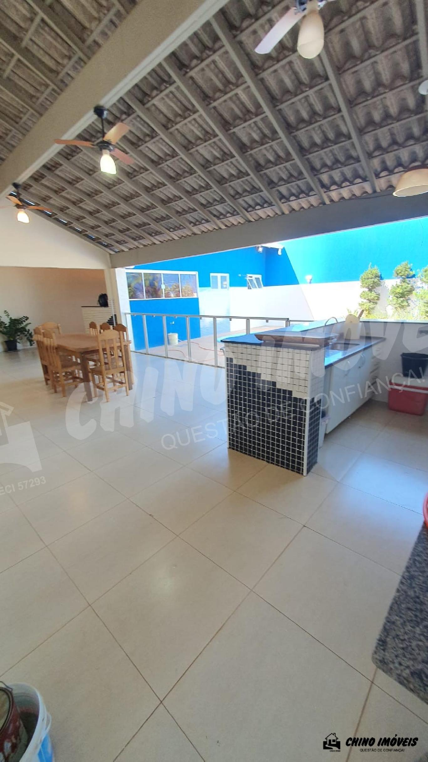 Sala, copa, 3 dormitórios sendo 2 suítes , 1 suíte com armários, piscina aquecida, aquecedor nos chuveiros e torneiras, área gourmet ampla com churrasqueira , 2 banheiro social,lavanderia, despensa , garagem para 5 veículos .Terreno : 396 m² e Construção : 221,90 m² - Imobiliária Chino Móveis - CRECI :32477-5